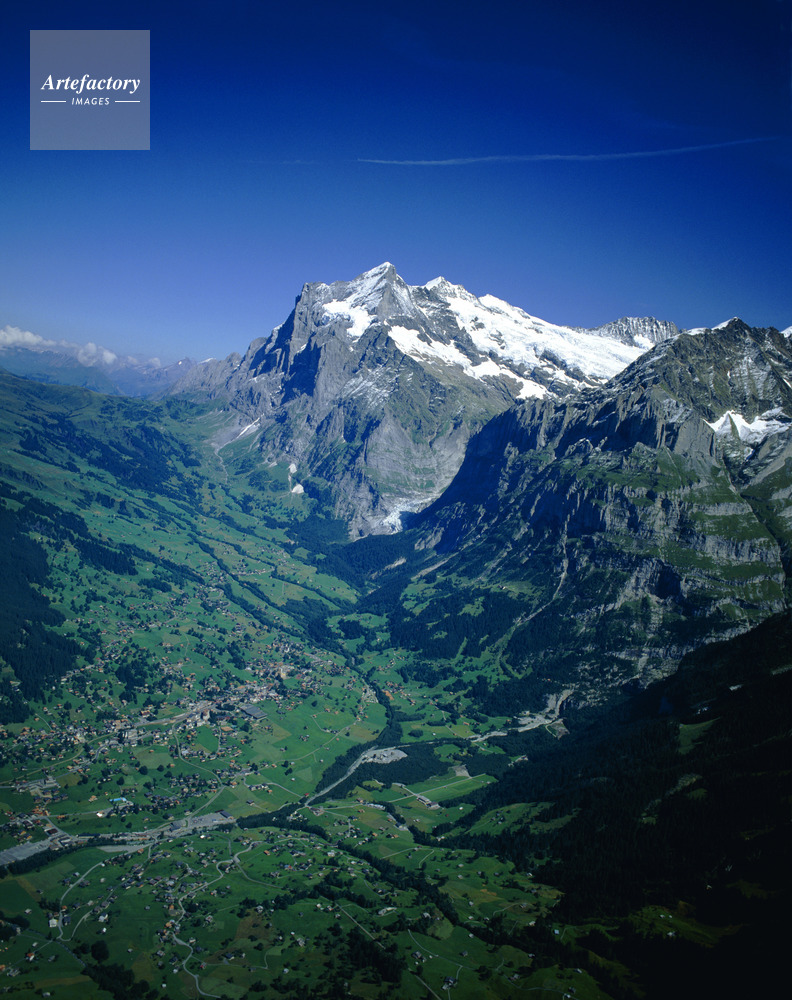 グリンデルワルトの村 ヴェッターホルン Wetterhorn 標高 3703m 山 Mountain ベルン州 Canton Of Berne ベルナー オーバーラント Berner Oberland ユングフラウ地方 Jungfrau グリンデルワルト グリンデルヴァルト Grindelwald 航空写真 Aero Photo Aerophotograph