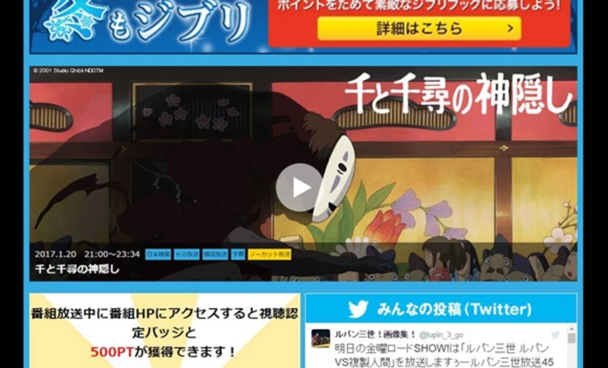 千と千尋の神隠し ジブリ映画 見逃し無料動画配信情報とみんなの口コミ